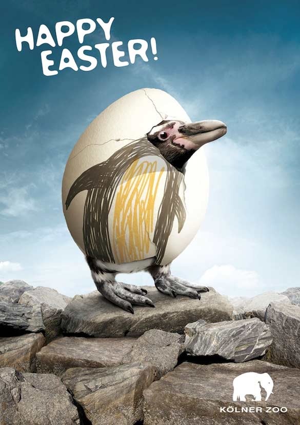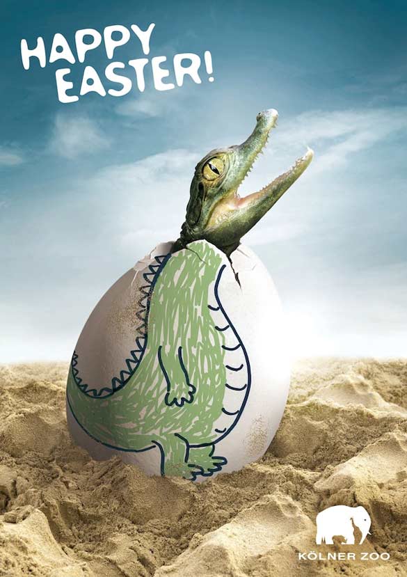 Германската зоолошка градина Kolner решила на мошне инвентивен начин да им го честита Велигден на своите посетители и постојани соработници. Овие интересни велигденски посетри се дело на креативниот тим на Preuss und Preuss – дизајн студио од Берлин.
