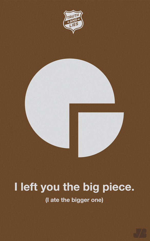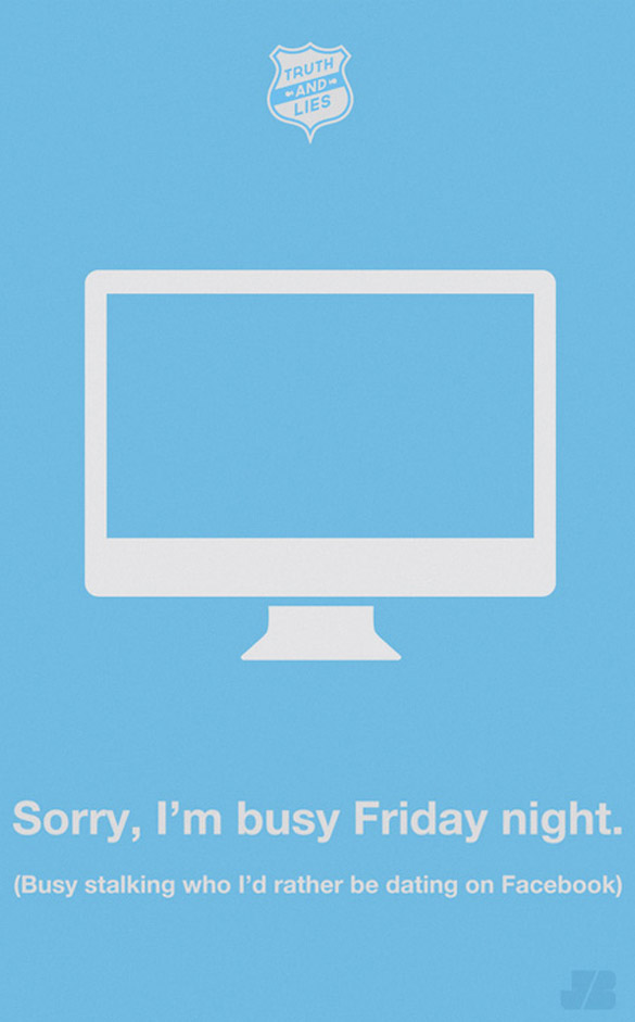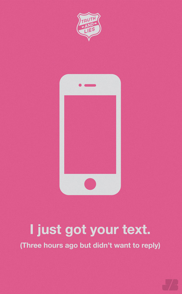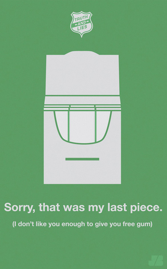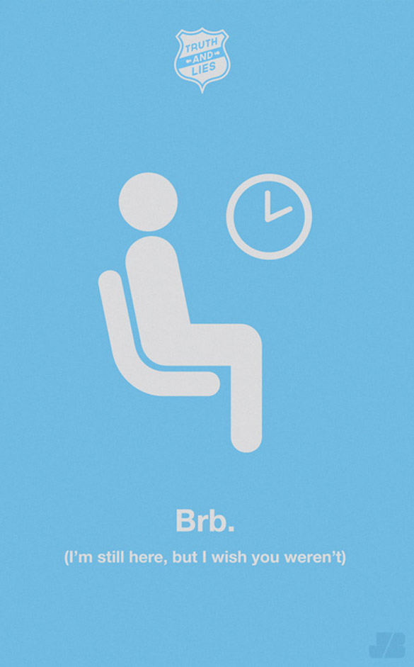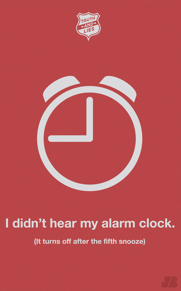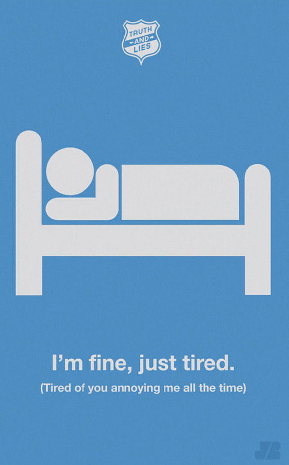 Во продолжение разгледајте серија на искрени постери кои се дело на талентираниот графички дијзанер Justin Barber. Неговата цел била да ги открие скриените вистини зад лагите кои најчесто ги кажуваат луѓето или ги слушаат од другите. Илустрациите го покажуваат вистинското значење на она што луѓето го кажуваат и што тоа всушност значи.