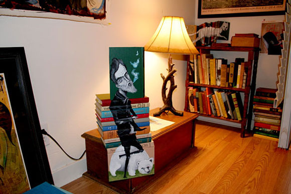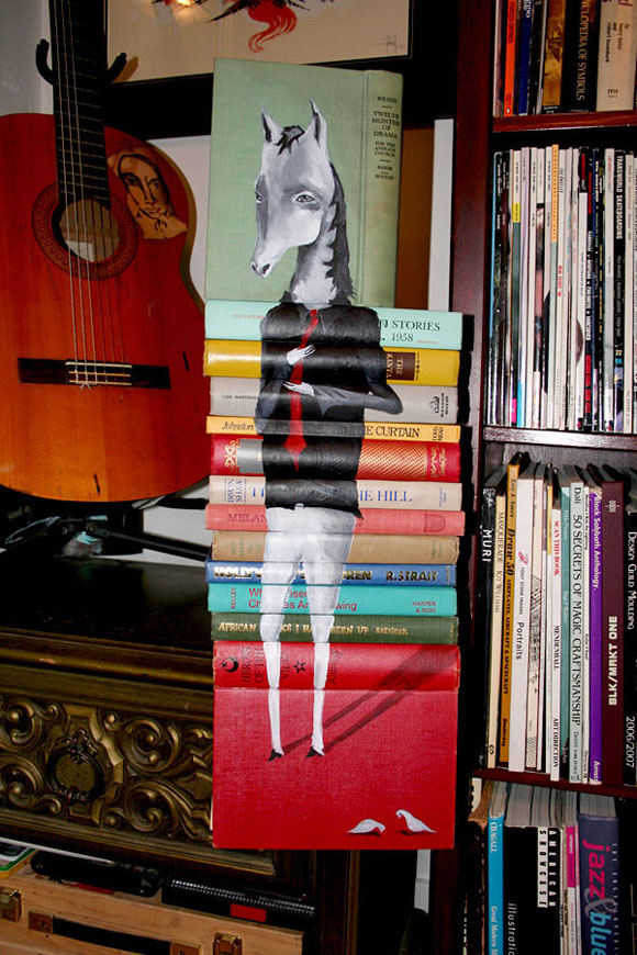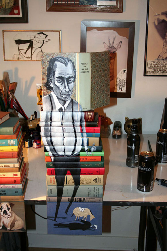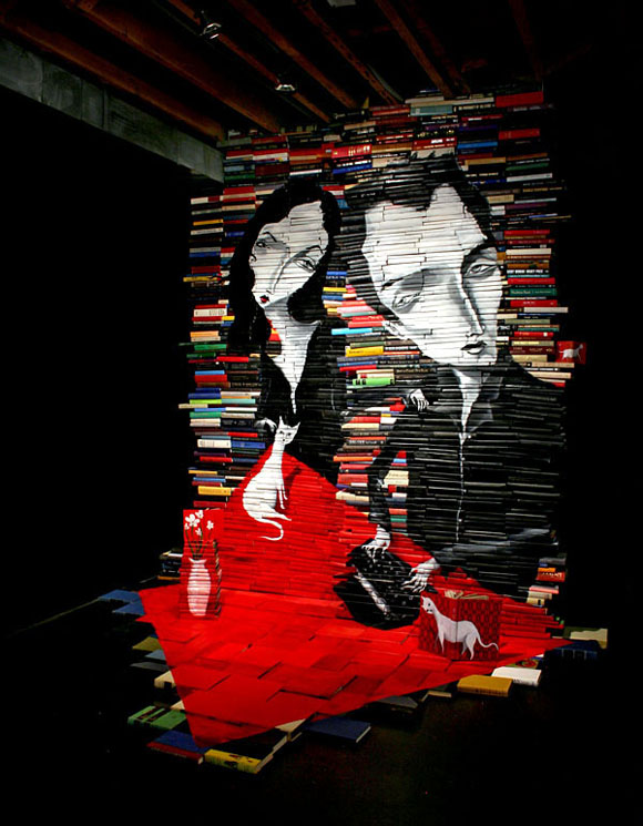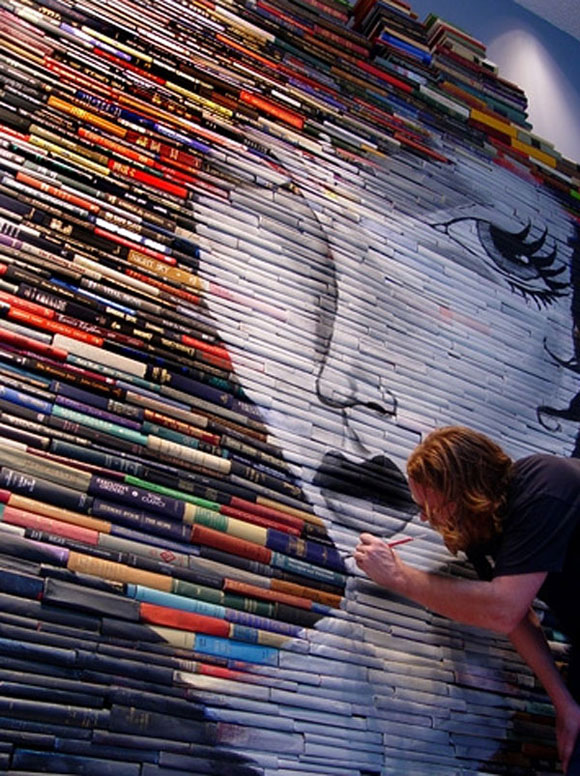 Mike Stilkey е уметник кој не само што сака да црта во книгите, туку и на нив. Тој својата уметност ја изразува на многу начини, па и преку цртање на кориците од книгите. Ова е одличен начин како да имате библиотека која ќе му даде еден сосема поинаков изглед на вашиот ентериер. А којзнае, можеби ќе не поттикне да прочитаме и што повеќе книги? 😉 Погледнете.
