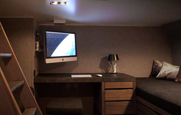 Јахтата е долга 30 метри од кои 19 метри се отворена површина наменета за сончање и уживање на сончевите зраци, а висока 10 метри. Направена е од висококвалитетен, нерѓосувачки челик, махагон и внимателно избрани материјали. Дизајнерот објаснува дека изборот на дрво е од естетски, но и технолошки и структурен аспект. Уживајте!!