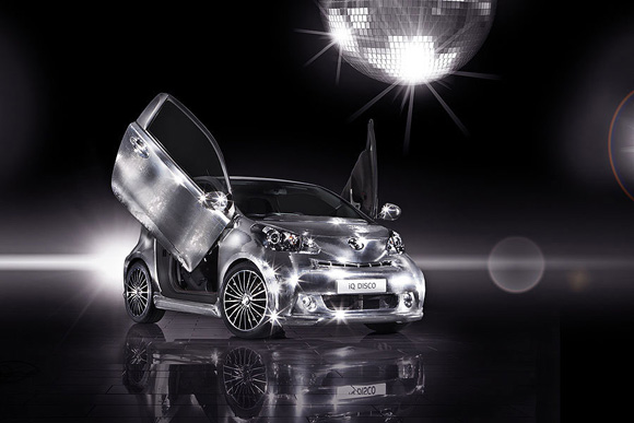 Јапонскиот производител ја лансираше новата Toyota iQ Disco на е вропскиот пазар и да, таа е направена на тој начин што личи на диско топка. Освен лудиот металик блескав финиш на екстериерот има и други работи поради кои оваа кола се нарекува Диско. Тоа се на пример: професионалниот DJ музички систем, „вратите ножички“ во стилот на Lambo како и 18 инчните бандажи.
