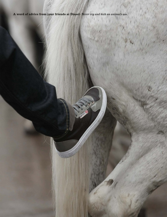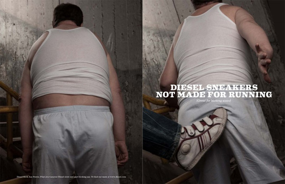 After their provocative ads campaigns and sex sells philosophy to stay them on the top, It is no big surprise that their newest ad marketing campaign Kick ass sneakers by Diesel is equally as avant garde. So good! Diesel always keep me smiling !