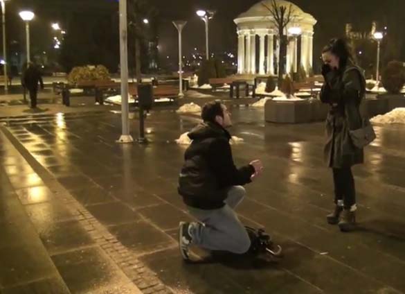 Ова видео дефинитивно ќе ви ја врати вербата во љубовта. Главни актери во оваа љубовна приказна се Александар и Еми. Погледнете ја реакцијата на девојката, и замислете си како би реагирале ако ви се случи вакво нешто вам? Сепак станува збор за чин кој ќе се памети цел живот, а Еми без сомнение ќе го памети. Храбро, смело, романтично! Браво Александар! Честитки од iLike.mk! 🙂