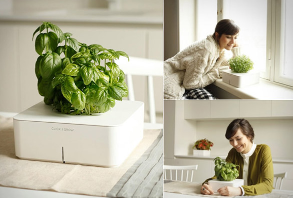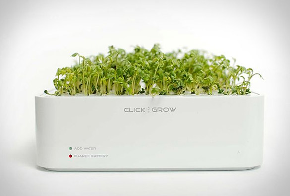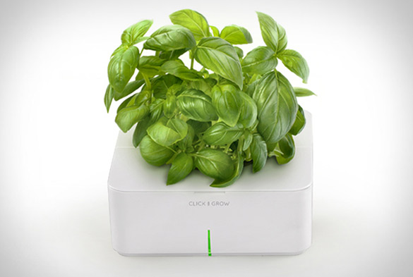 Уредот “Click & Grow” многумина го нарекуваат и личен градинар. Станува збор за електронски систем кој автоматски можете да го подесите да ги наводнува растенијата или пак да им овозможи прихрана во согласност со нивните потреби. Доколку имате сезонско растение, можете да го откорнете и да си засадите некое друго растение. Одличен е за одгледување мали домати, чили пиперчиња, босилек или магдонос. Функционира на батерии, а неговата цена изнесува 60$.