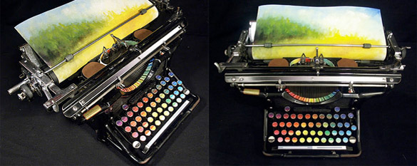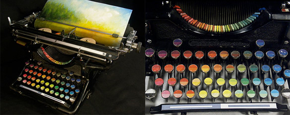 Американскиот сликар Tyree Callahan ја конвертирал оваа стара машина за пишување, која сега наместо букви печати бои. Буквите се заменети со печати во боја, и со малку труд може да се направи вистинско уметничко дело.