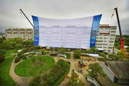 Во шведскот град Розенгард, локалните застапници на Nokia својата маркетингшка кампања ја издигнаа на повисоко ниво. Беше поставен огромен екран со големина од 51х28 метри, кој беше одржуван од два големи крана.