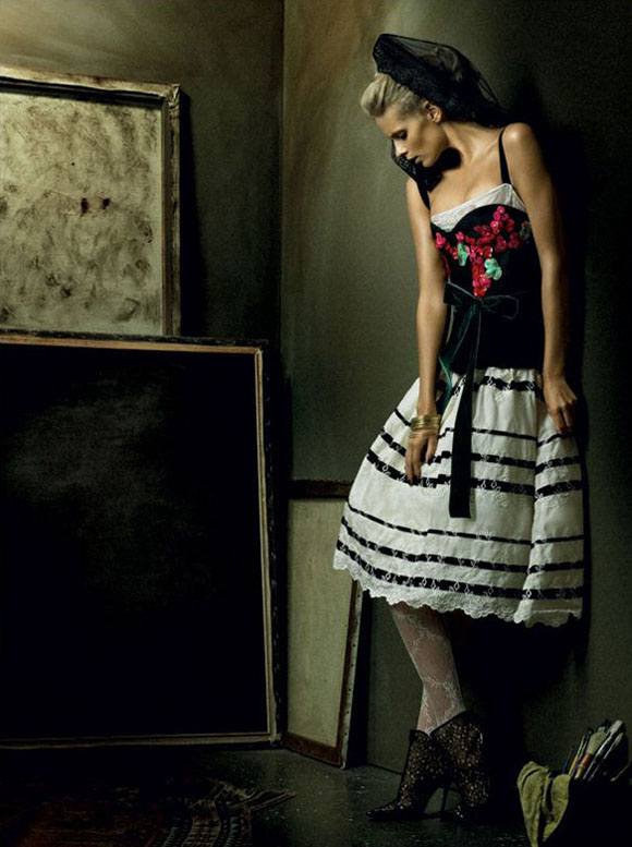 Моделот на фотографиите е Џулија Стегнер облечена во раскошните фустани на Calvin Klein и Louis Vuitton, а приказната ја визуелизираше Алекси Лубомирски.