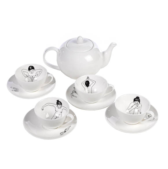 Интересен сет за чај. Бели порцелански чаши, кои кога се полни со чај , изгледа како девојките (кои се илустрирани во внатрешноста) да се капат во сопствената топла када. Додека се бањаат девојките, Вие бидете креативни со чајната ќесичка. 🙂