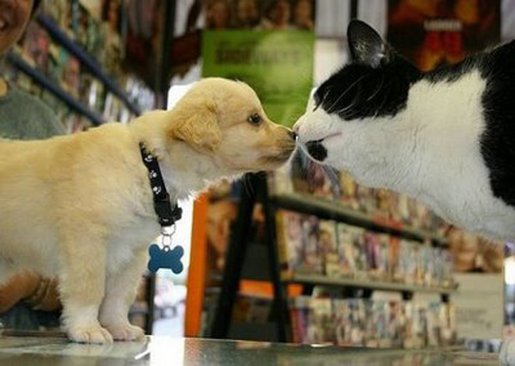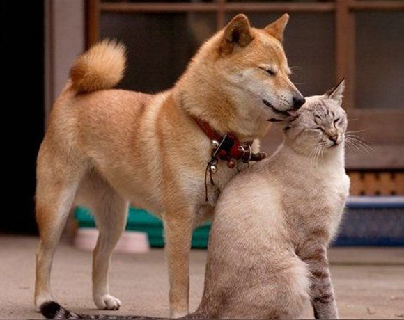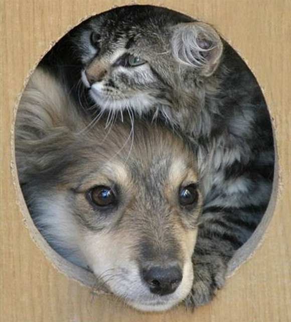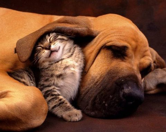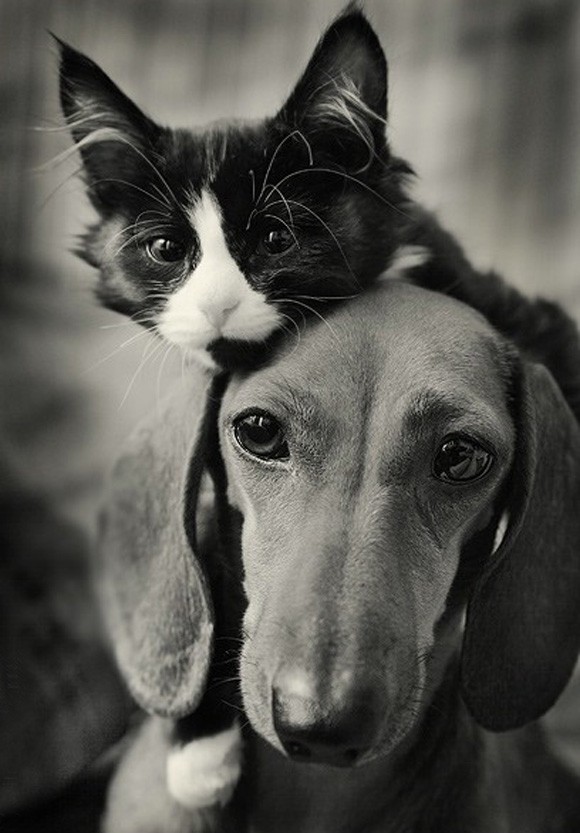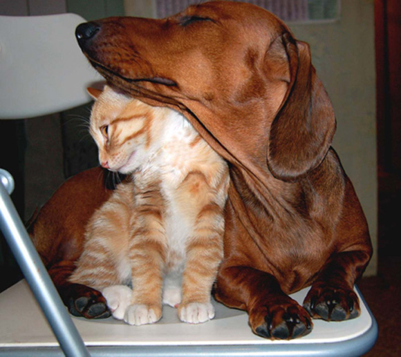 Ја знаете поговорката “Како маче и куче” која е синоним за луѓе кои не се согласуваат, кои се во конфликт, кои не се сакаат? Но, фотографииве кои следат дефинитивно ќе ја негираат популарната поговорка 😛
