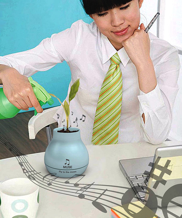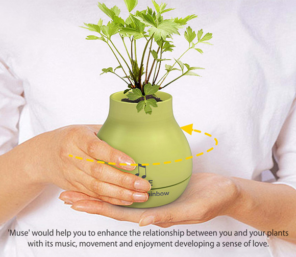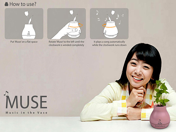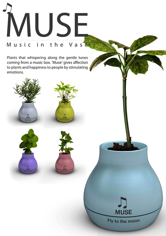 На прв поглед станува збор за несекојдневна футуристичка вазна за цвеќе. Но, тоа не е нејзината основна функција. “МУЗА” е всушност музичка вазна која “му пее” серенади на Вашето цвеќе. МУЗА е достапна во повеќе бои со повеќе различни серенади. Ова е одличен начин да се провери теоријата за влијанието на музиката врз растенијата.