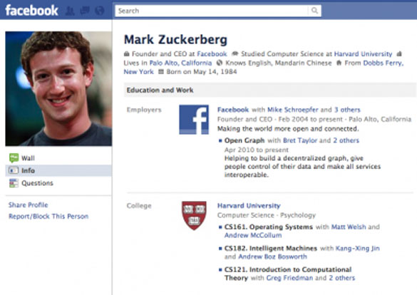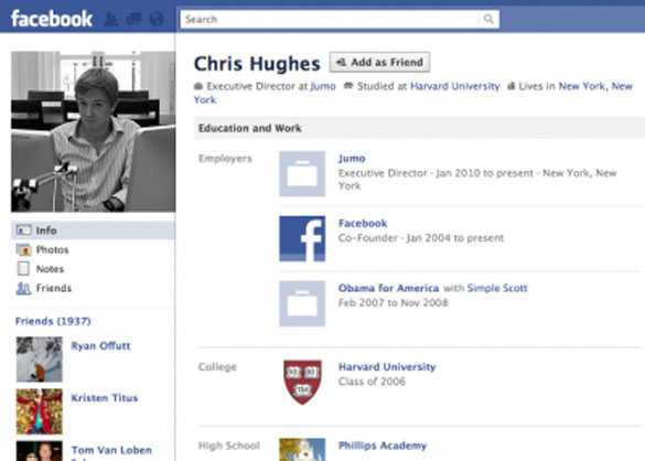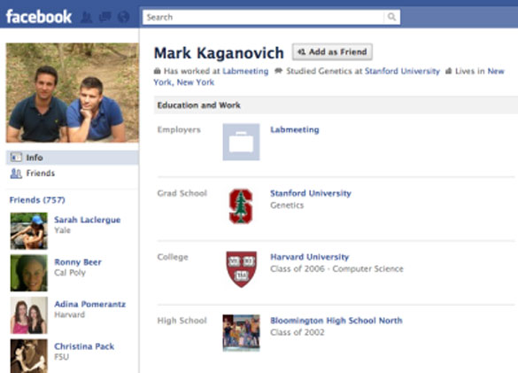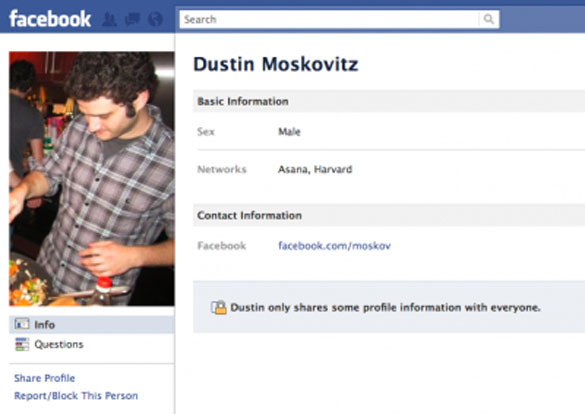 Според ова, пронајдени се профилите на луѓето кои се сопственици на првите профили на оваа социјална мрежа. Првите три профили не постојат, поради тоа што Mark Zuckerberg ги има искористено како пробни, така што тие почнуваат од бр.4. Секако првите дест профили се најблиските колеги на Марк од Харвард, а понатаму се нивни блиски и подалечни познаници. Инаку, првиот профил креиран од жена е со реден број 33.