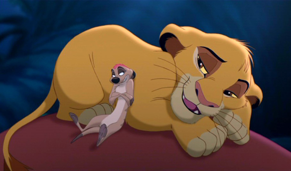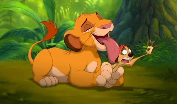 Додека се наоѓа во џунглата, Симба ги запознава Тимон и Пумба, коиго тераат да го научи нивното мото “Hakuna Matata” и потоа ќе порасне, без грижи.