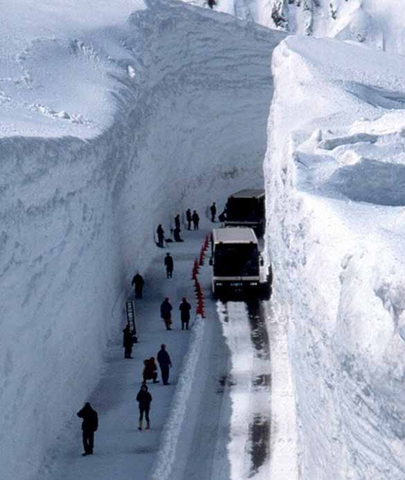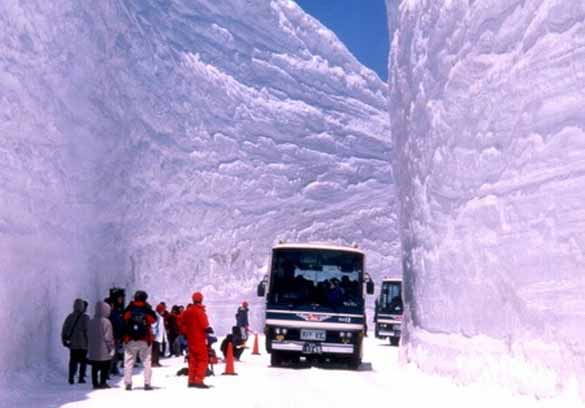 Но, и не е се така ‘црно’, или во случајов, бело. И покрај непристапноста во зима, на локалните власти им текнала генијална идеја. Во средината на Април, со помош на возила – риналки, се пробива патот до врвот, со што се создаваат неверојатни снежни кањони, или таканаречени ‘Yuki-no Otani’, кои претставуваат огромна туристичка атракција, која ја посетуваат стотици луѓе секоја година.
