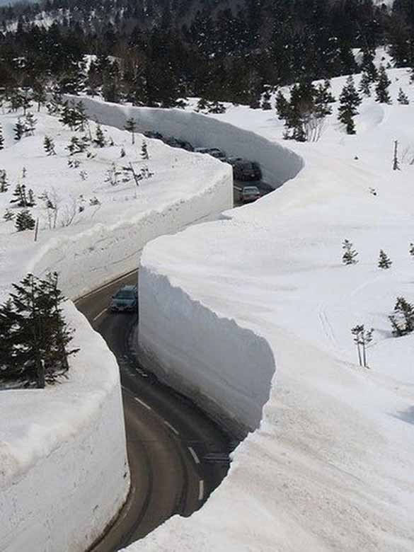Фотографиите коишто ги гледате се земени од патиштата водат низ планинските превои до планината Tateyama, која е една од трите најпосетувани во Јапонија. Во зима овие патишта се целосно затворени за сообраќај, поради големите снежни наноси.