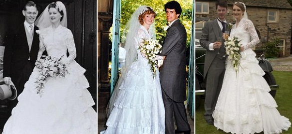 Дваесет и пет годишната англичанка ја продолжила традицијата од далечната 1959 година. Венчалниот фустан го купила нејзината баба Дороти Сампсон и истиот чинел 30 фунти. Дороти фустанот го чувала од сентиментални причини и не ни помислила дека еден ден нејзината ќерка, па и внука ќе го облечат.