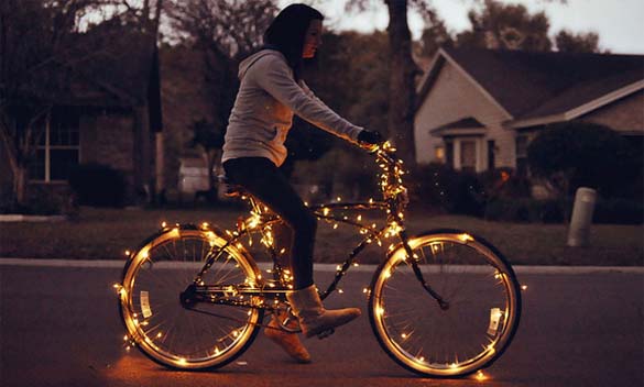 Фотографката Шелби Танер му дала вистинска новогодишна нота на својот велосипед обмотувајќи го целиот со сијалички кои светат додека вртите со педалите. Интересно!!
