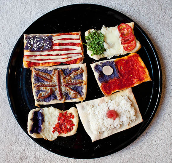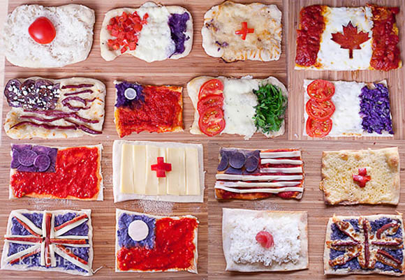 Дека човековите идеи се неограничени и интересни, докажуваат сликите што следат. И пица лепчето може да изгледа уште поинтересно, кога би ги употребиле продуктите чија комбинација на бои одговара на знамето на некоја држава. А чие знаме е највкусно? : ))