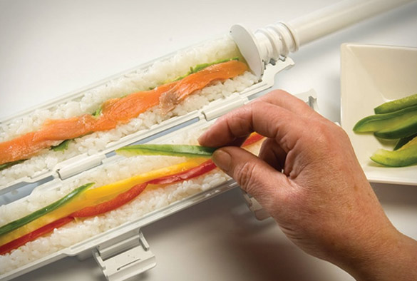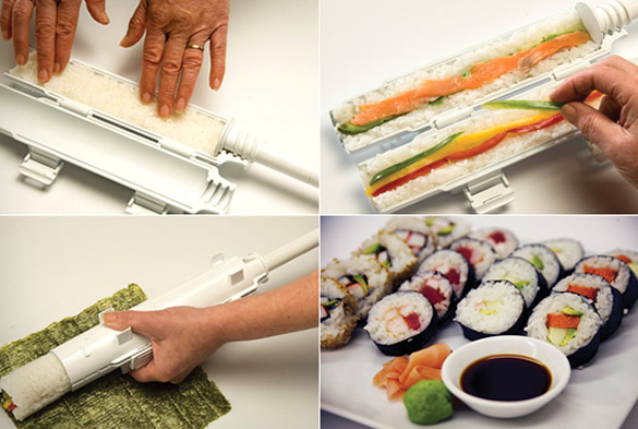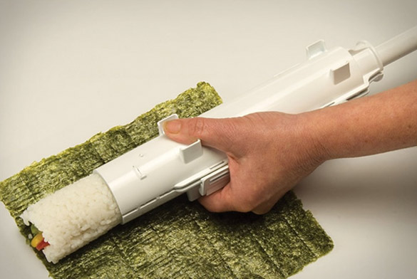 Конечно убава вест за љубителите на суши, посебно на оние кои сакаат сами да си подготват. Оваа суши базука е многу лесна за употреба. Едноставно се пополнува цевката со ориз и се додаваат омилените состојки. Потоа се затвора и се притиска рачката која го исфрла оризот во одлична цилиндрична форма, која се става врз нори.