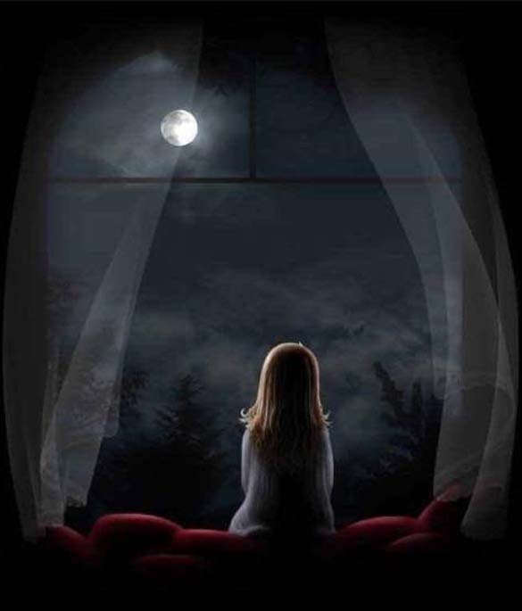 стол, седиме заедно пред прозорецот. Ја бараме Mесечината. Потребно ни е нејзиното