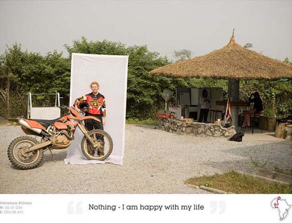 Фотографот Paul Close патувал низ Африка со својот мотоцикл и реализирал навистина интересен проект. Тој фотографирал портетри на луѓе од локалното население, кои одговарале на прашањето „Што ќе го направи Вашиот живот подобар?“. Добиената колекција фотографии е насловена “Snakebox Odyssey“. Погледнете какви желби имаат африканските жители.