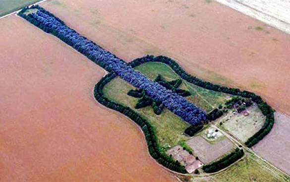 Неверојатната шума формирана во облик на џиновска гитара е лоцирана во аргентинската провинција Ла Пампа. Пред повеќе од 35 години, Педро Урета неочекувано ја загубил својата сопруга. Како последица на мозочна аневризма таа починала на 25 години. Идејата да се посади нешто во интересен облик била на неговата сопруга Грациела, која претходно го надлетала тој дел. За жал, таа никогаш не ја реализирала својата идеја, која требало да ја исполни со сопругот. Токму затоа, Урета одлучил да го оствари сонот на својата покојна сопруга, без оглед на тоа што морал тоа да го направи сам. Уништен од загубата на љубовта на својот живот, тој одлучил да создаде храм во нејзино сеќавање кој може да се види само од авион. Урета ја избрал гитарата, бидејќи тоа бил омилениот инструмент на неговата жена. Тој го посветил своето слободно време на садење и одгледување на дрвјата во форма на гитара.
