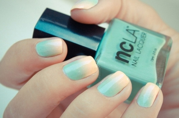 Омбре, кој е актуелен во областа на маникирот, шминката, па дури и гардеробата, претставува ефект кој се постигнува со нијансирање на бои кои се прелеваат една во друга (од најтемно до најсветло). За да си направите ваков маникир, потребно е: бел матиран лак кој ќе се нанесе како основа, 3 различни бои на лак со кои ќе нијансирате и апликатор за нанесување пудра. Погледнете ги комбинациите на бои како предлог за вашиот омбре маникир и погледнете го видеото кое ќе ви покаже како најлесно се прави овој маникир.